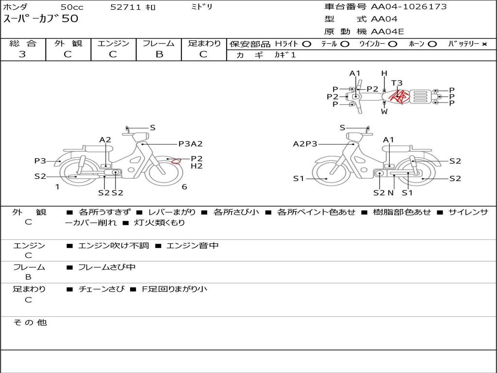 | Номер рамы / VIN | AA04-1026173 |