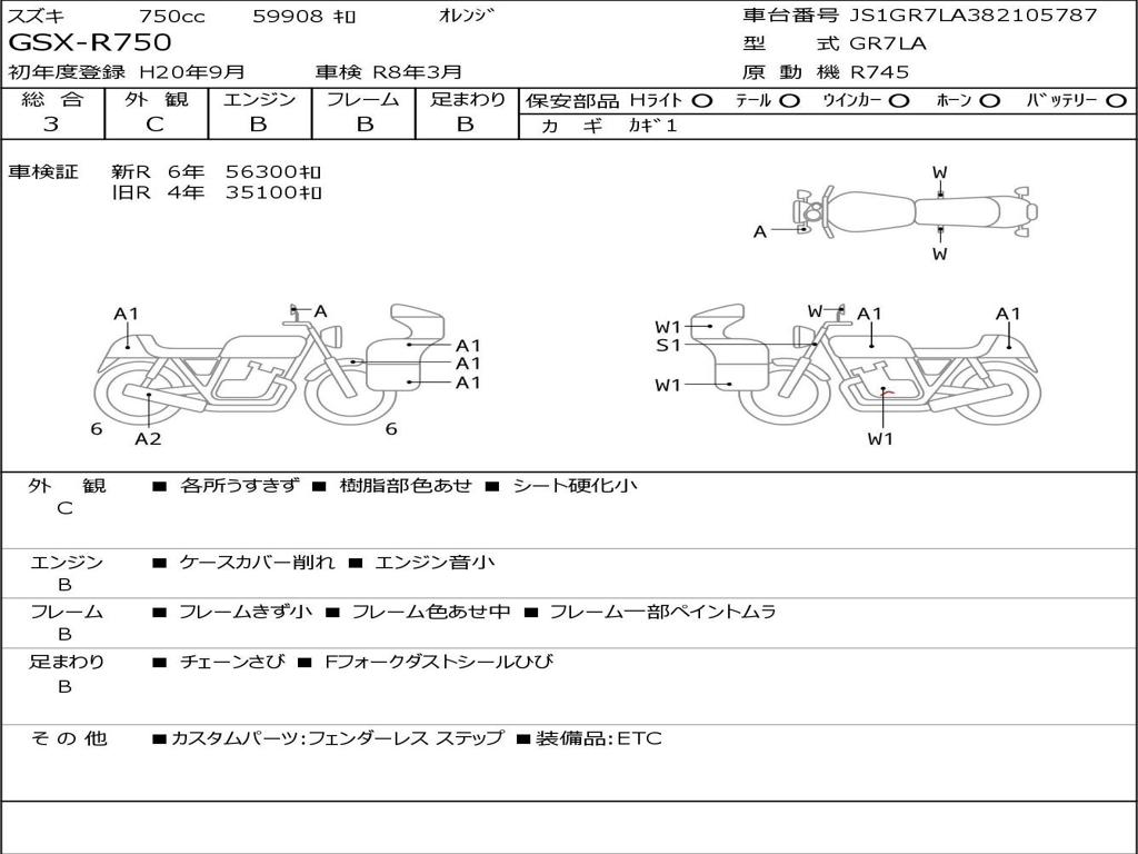 | Номер рамы / VIN | JS1GR7LA382105787 |