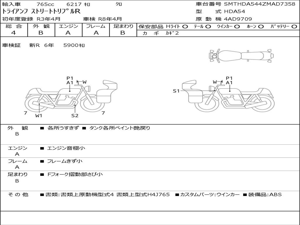 | Отметка об участии мотоцикла в авариях | Мотоцикл не участвовал в ДТП |