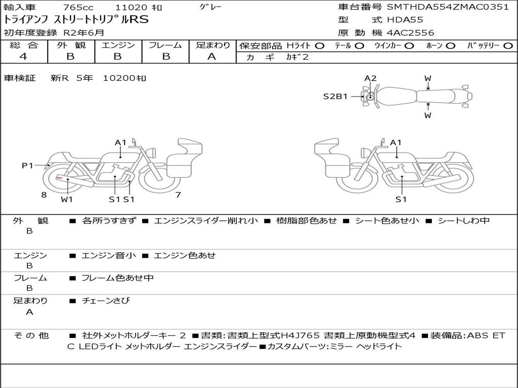 | Отметка об участии мотоцикла в авариях | Мотоцикл не участвовал в ДТП |