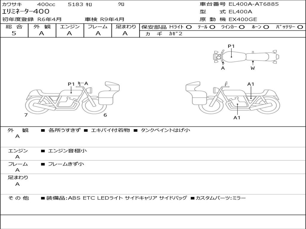 | Номер рамы / VIN | EL400A-AT6885 |