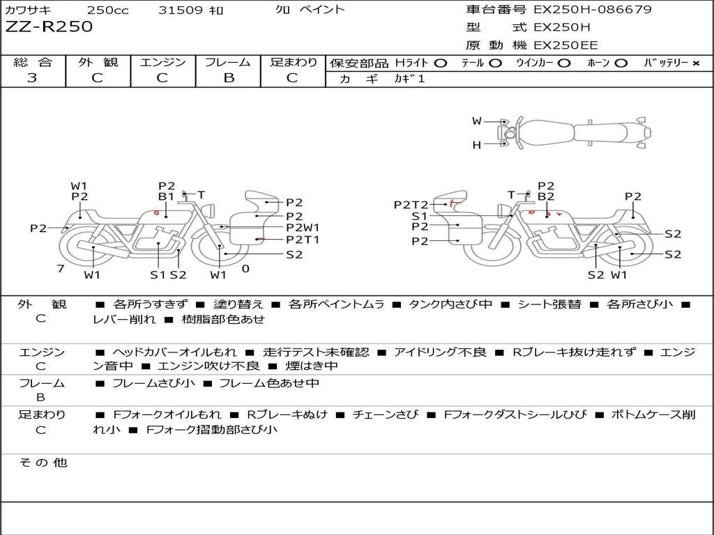 | Номер рамы / VIN | EX250H-086679 |