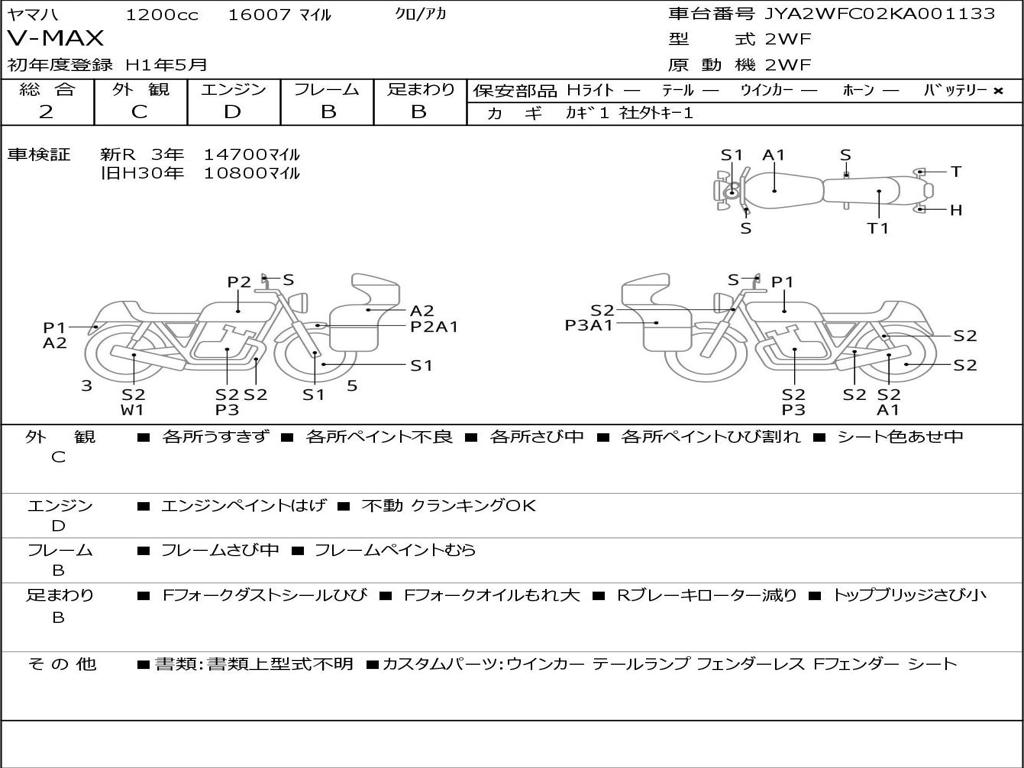 | Номер рамы / VIN | JYA2WFC02KA001133 |