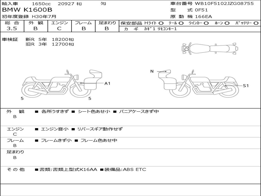 | Номер рамы / VIN | WB10F5102JZG08755 |
