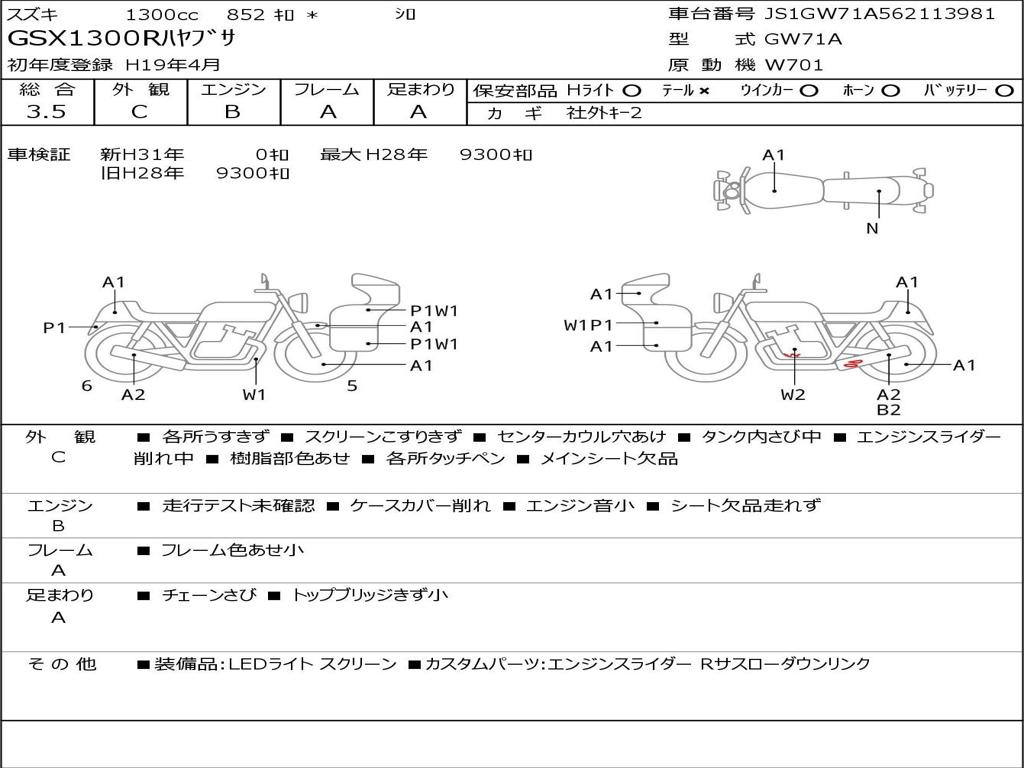 | Номер рамы / VIN | JS1GW71A562113981 |