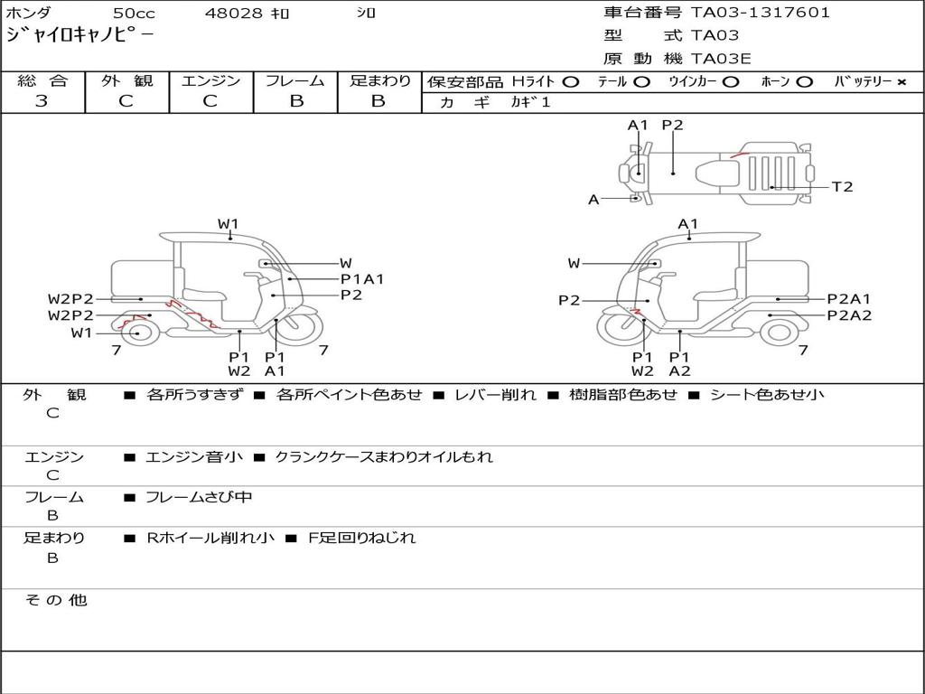 | Номер рамы / VIN | TA03-1317601 |
