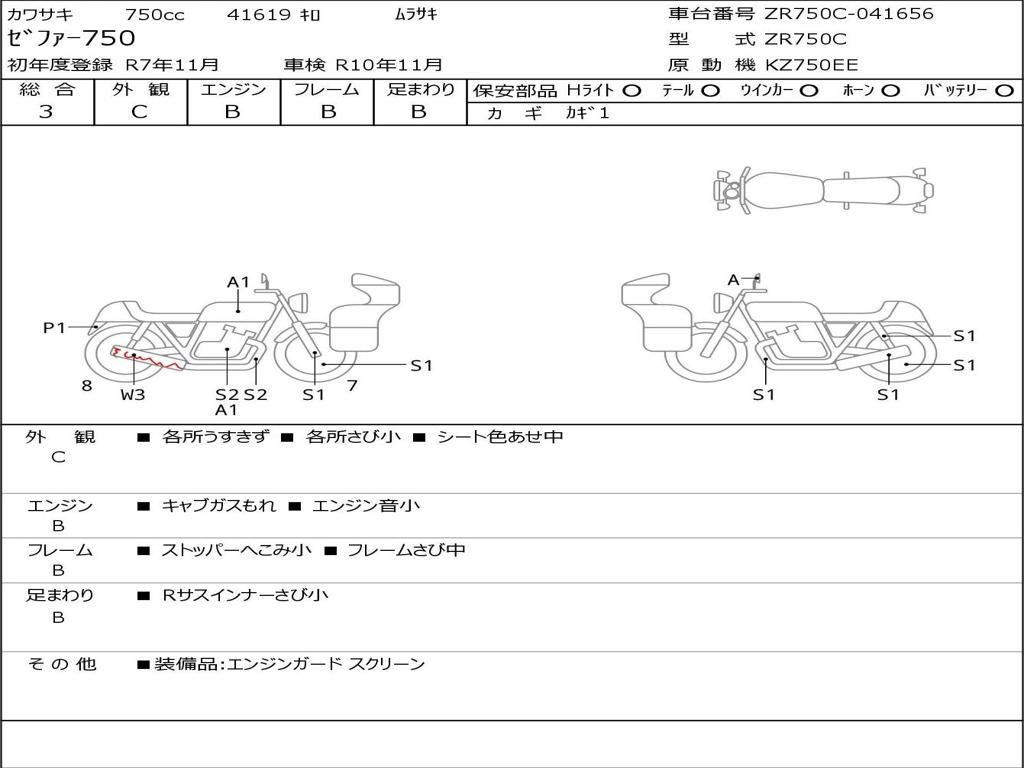 | Номер рамы / VIN | ZR750C-041656 |