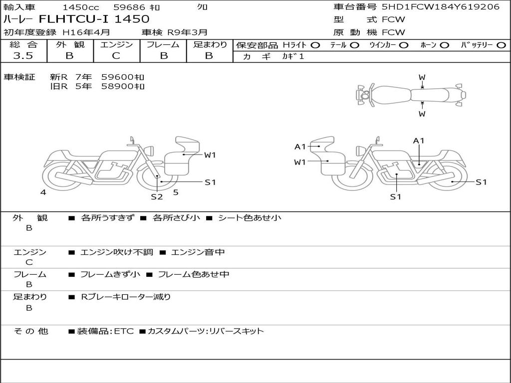 | Номер рамы / VIN | 5HD1FCW184Y619206 |