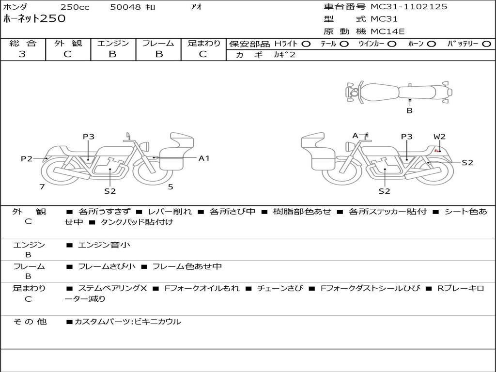 | Номер рамы / VIN | MC31-1102125 |