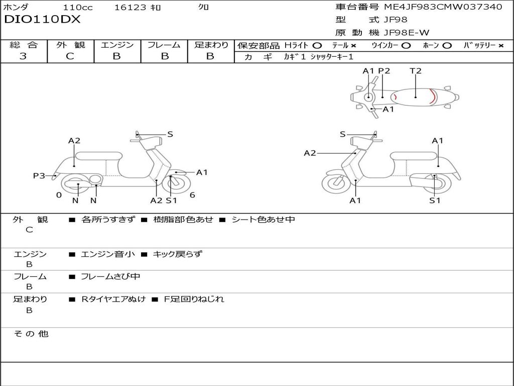 | Номер рамы / VIN | ME4JF983CMW037340 |