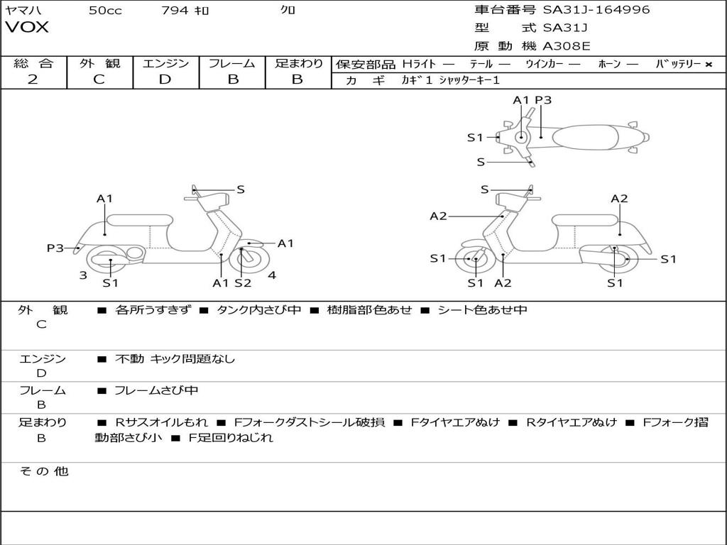 | Номер рамы / VIN | SA31J-164996 |