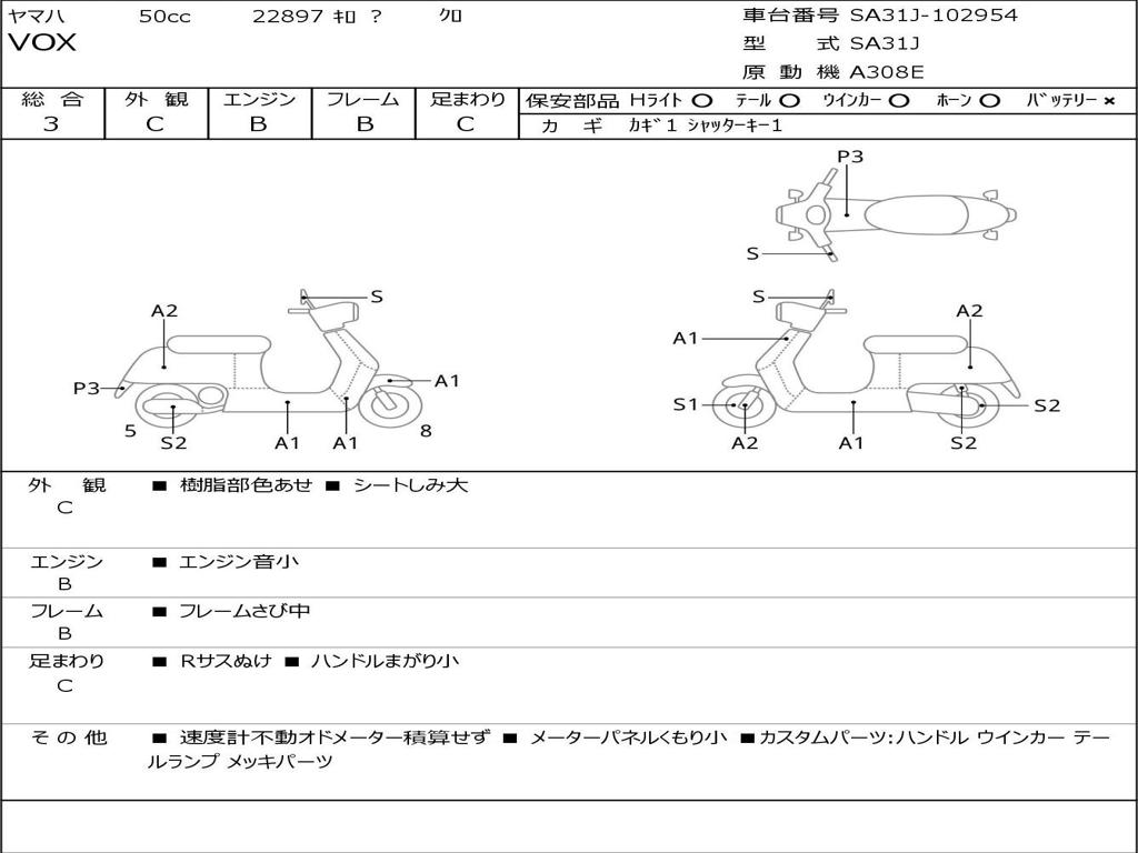 | Номер рамы / VIN | SA31J-102954 |