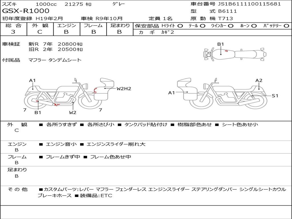 | Номер рамы / VIN | JS1B6111100115681 |