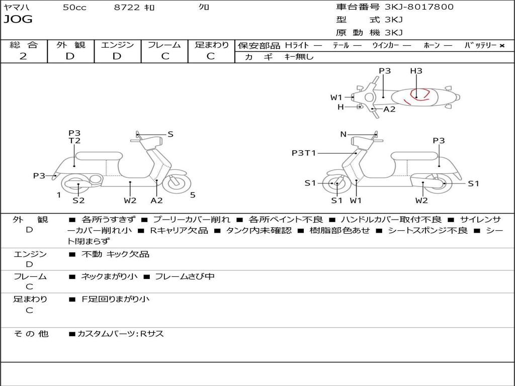 | Номер рамы / VIN | 3KJ-8017800 |