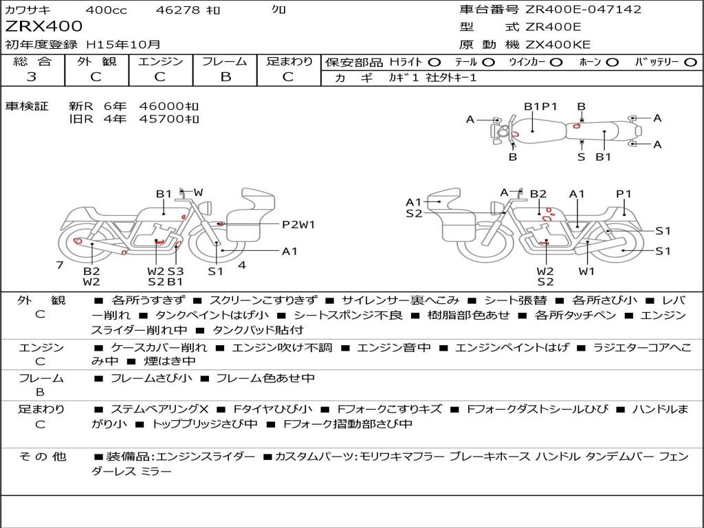 | Номер рамы / VIN | ZR400E-047142 |