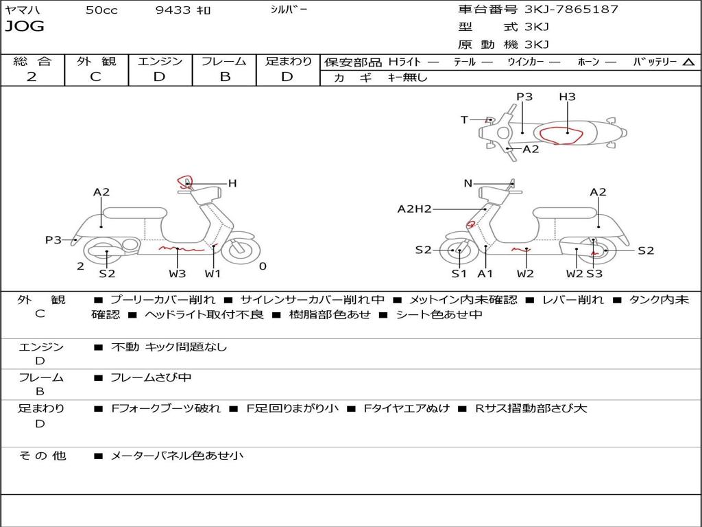| Номер рамы / VIN | 3KJ-7865187 |