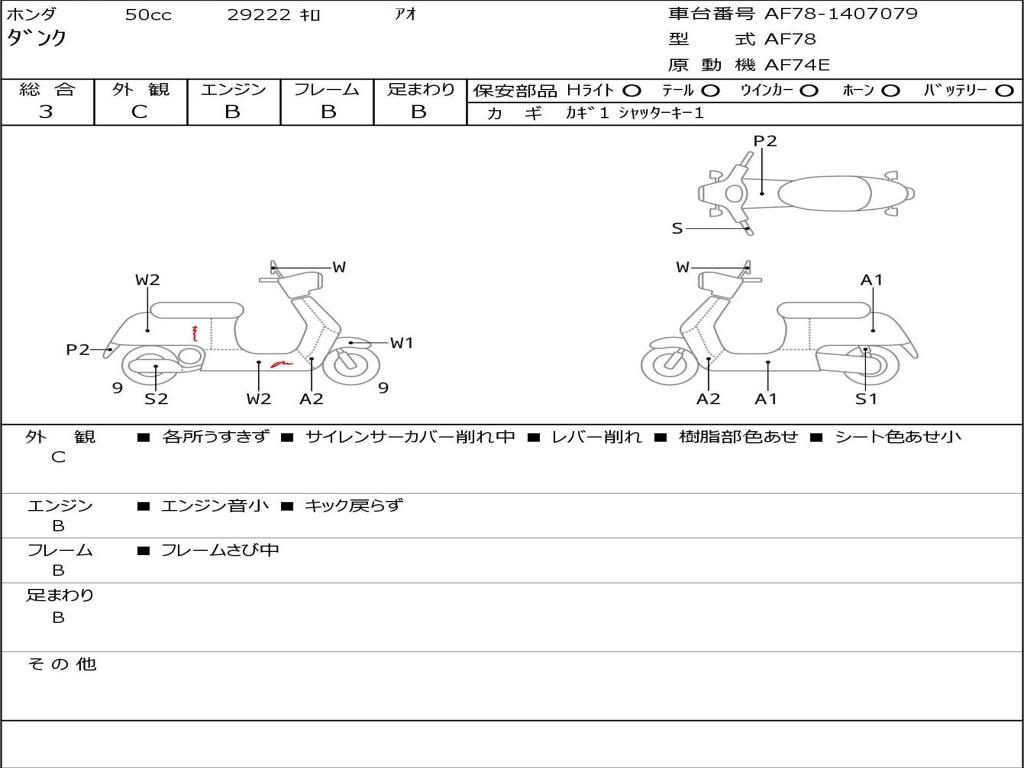 | Номер рамы / VIN | AF78-1407079 |