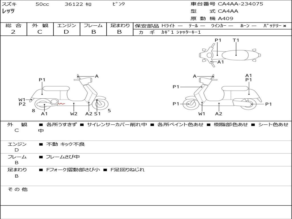 | Номер рамы / VIN | CA4AA-234075 |