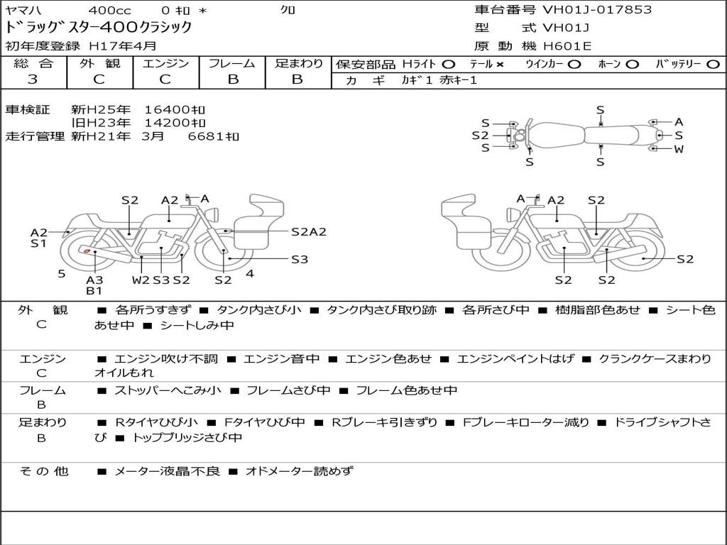 | Номер рамы / VIN | VH01J-017853 |