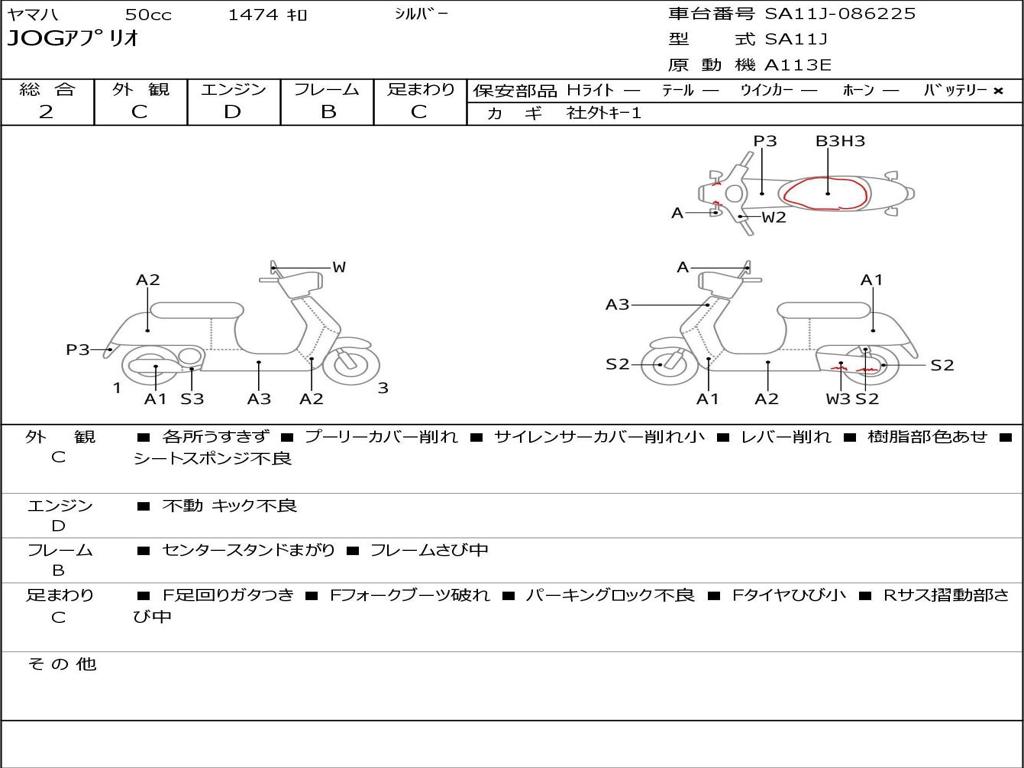 | Номер рамы / VIN | SA11J-086225 |