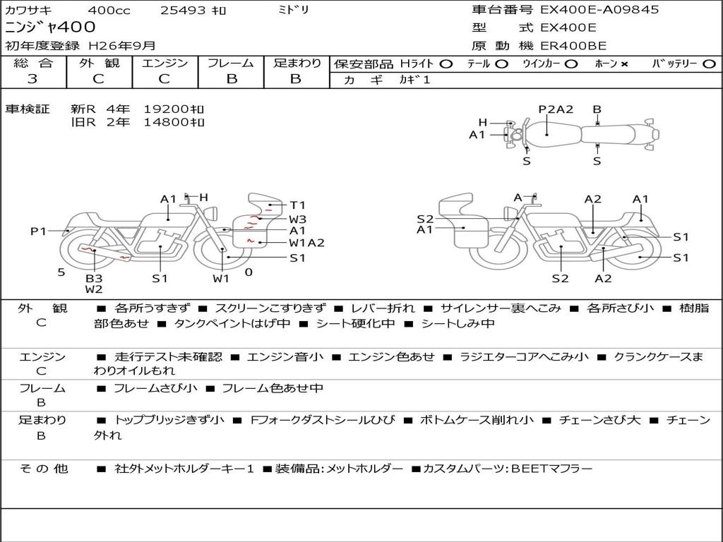 | Номер рамы / VIN | EX400E-A09845 |