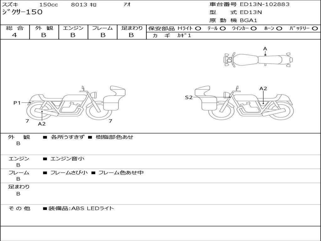 | Номер рамы / VIN | ED13N-102883 |