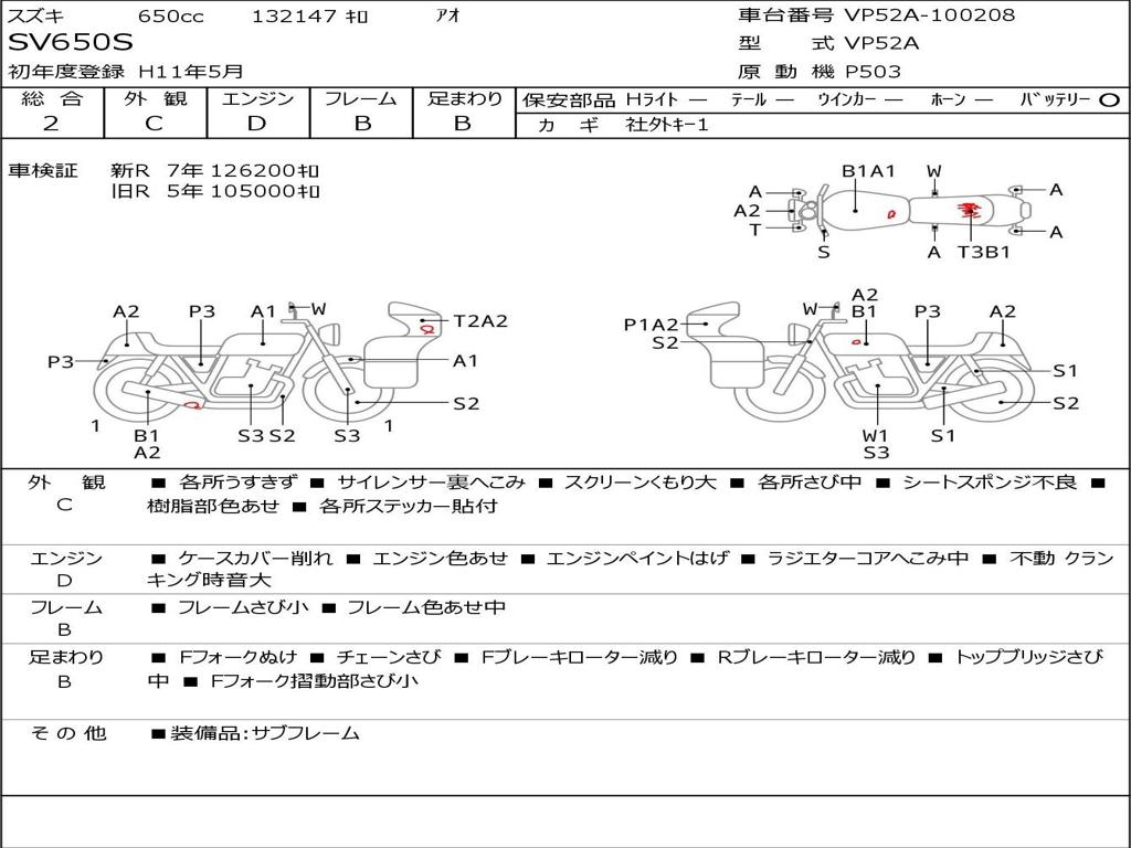 | Номер рамы / VIN | VP52A-100208 |