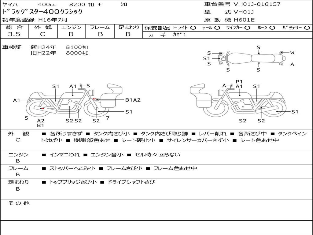 | Номер рамы / VIN | VH01J-016157 |