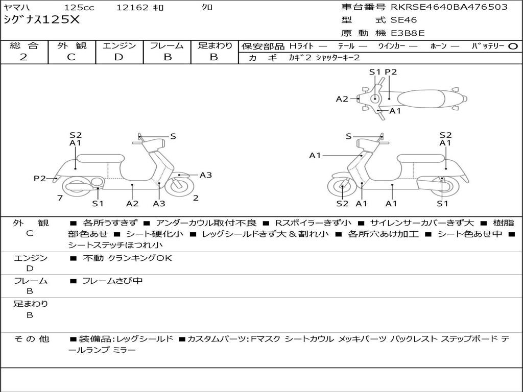| Номер рамы / VIN | RKRSE4640BA476503 |