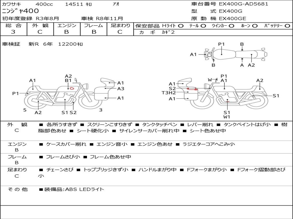 | Номер рамы / VIN | EX400G-AD5681 |