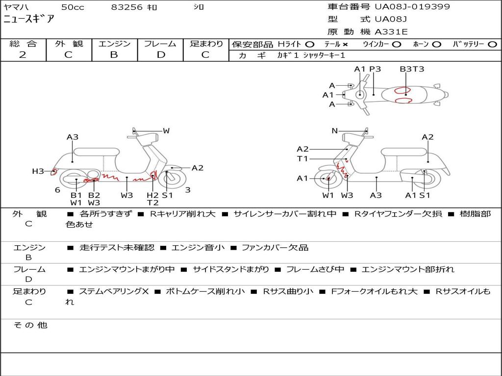 | Номер рамы / VIN | UA08J-019399 |
