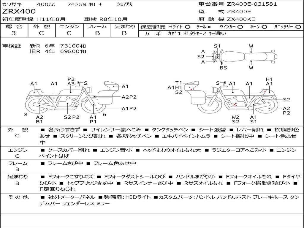 | Номер рамы / VIN | ZR400E-031581 |