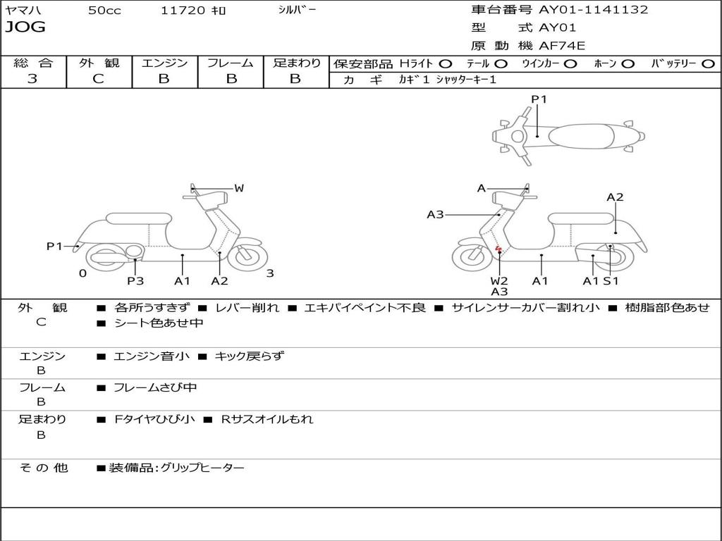 | Номер рамы / VIN | AY01-1141132 |