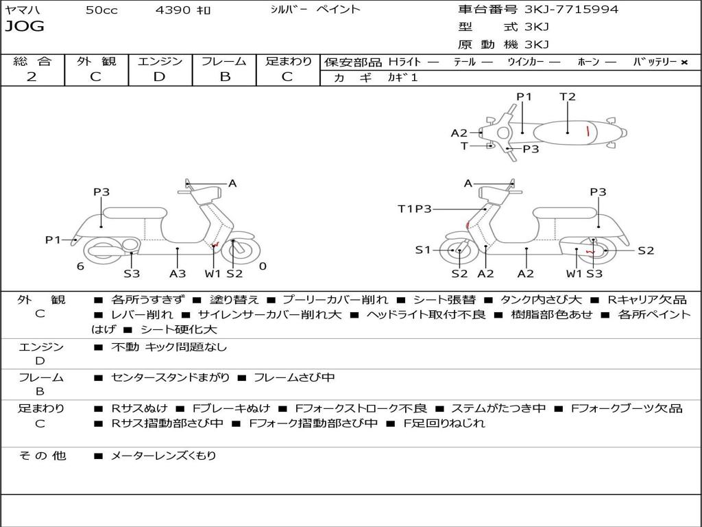 | Номер рамы / VIN | 3KJ-7715994 |
