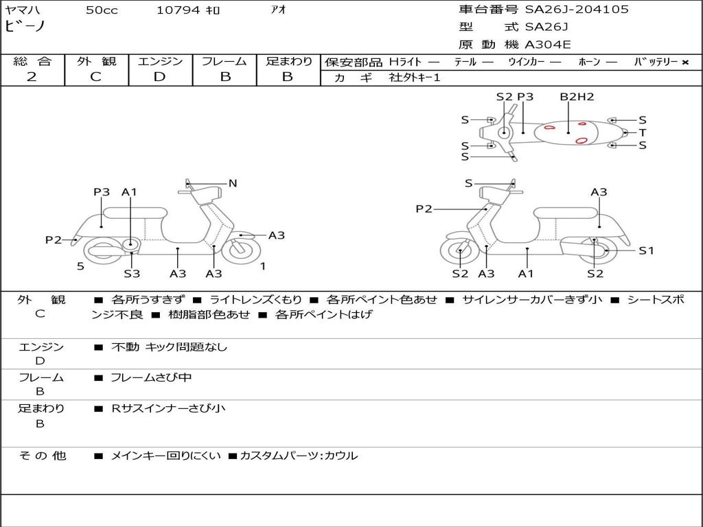 | Номер рамы / VIN | SA26J-204105 |