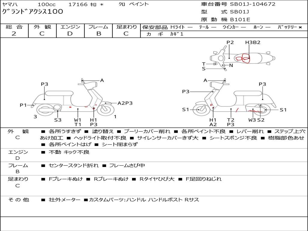 | Номер рамы / VIN | SB01J-104672 |
