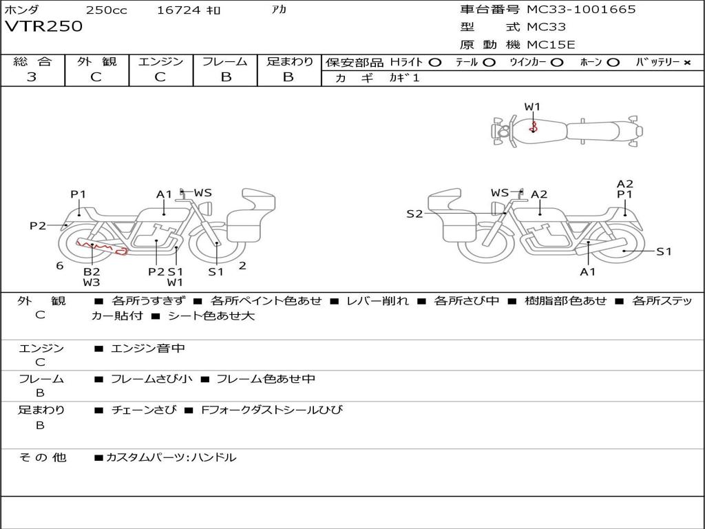 | Номер рамы / VIN | MC33-1001665 |
