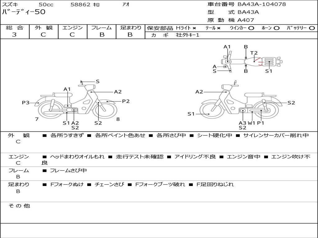 | Номер рамы / VIN | BA43A-104078 |