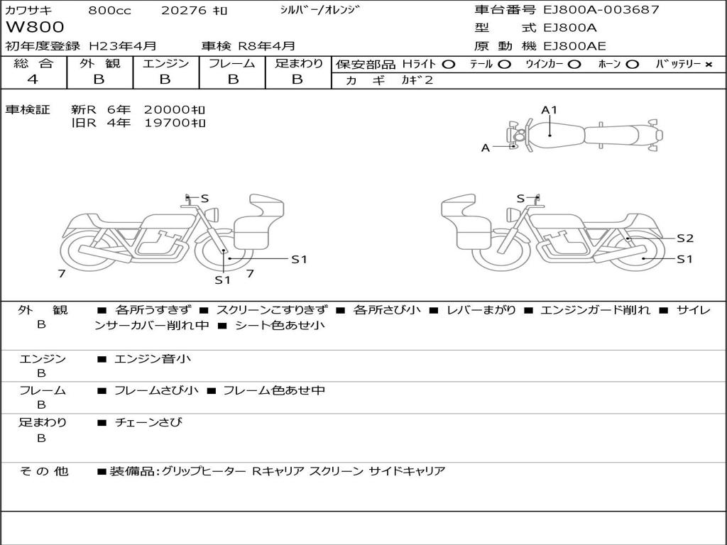 | Номер рамы / VIN | EJ800A-003687 |