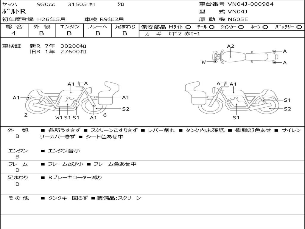| Номер рамы / VIN | VN04J-000984 |