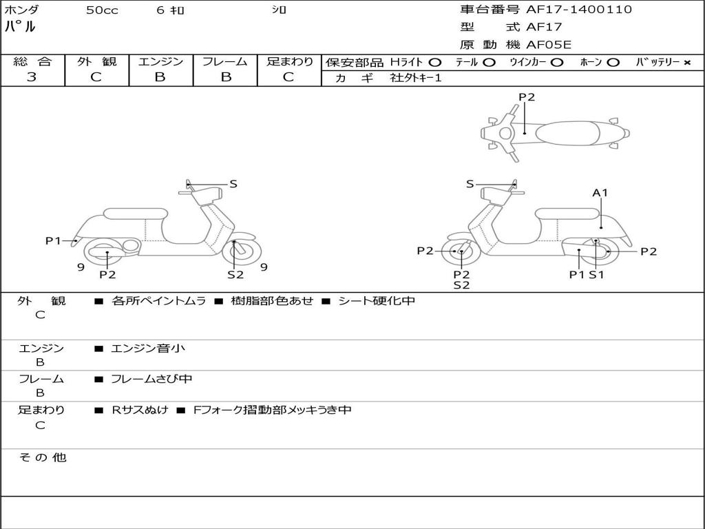 | Номер рамы / VIN | AF17-1400110 |