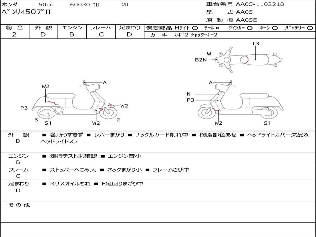 | Номер рамы / VIN | AA05-1102218 |