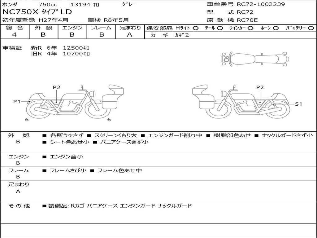| Номер рамы / VIN | RC72-1002239 |