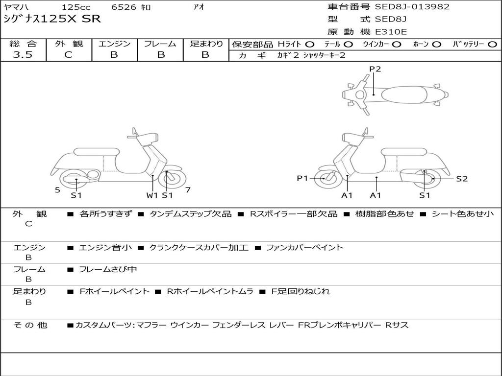 | Номер рамы / VIN | SED8J-013982 |