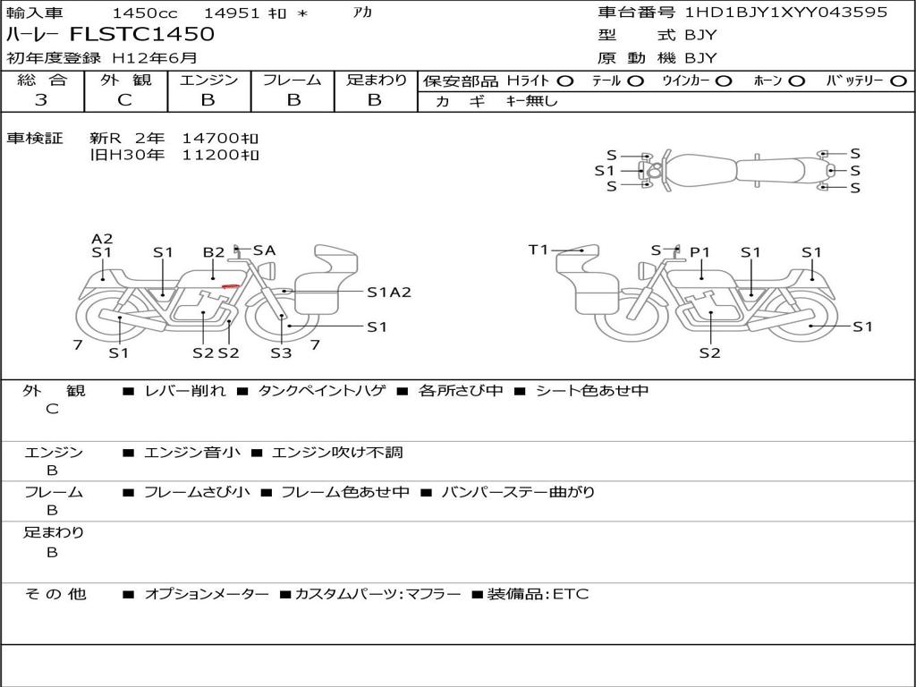 | Номер рамы / VIN | 1HD1BJY1XYY043595 |