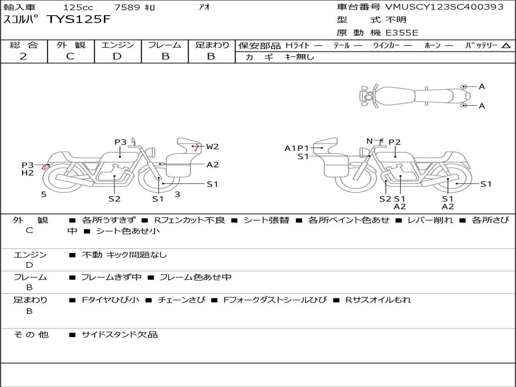 | Номер рамы / VIN | VMUSCY123SC400393 |