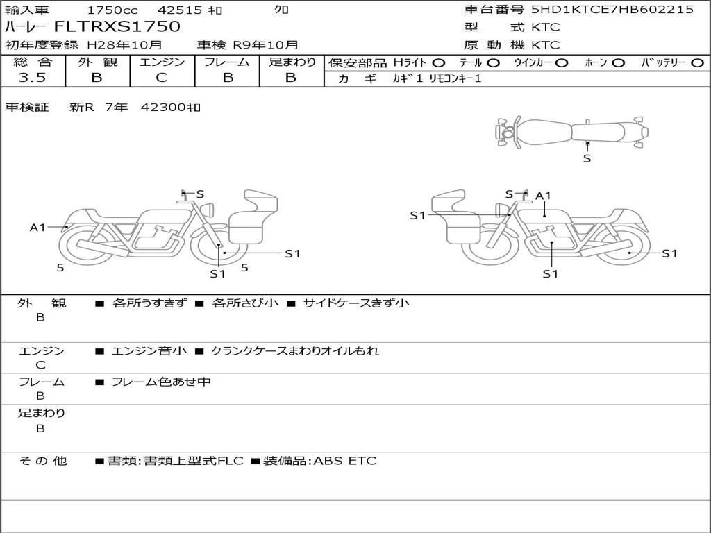 | Номер рамы / VIN | 5HD1KTCE7HB602215 |