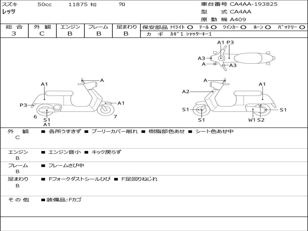 | Номер рамы / VIN | CA4AA-193825 |