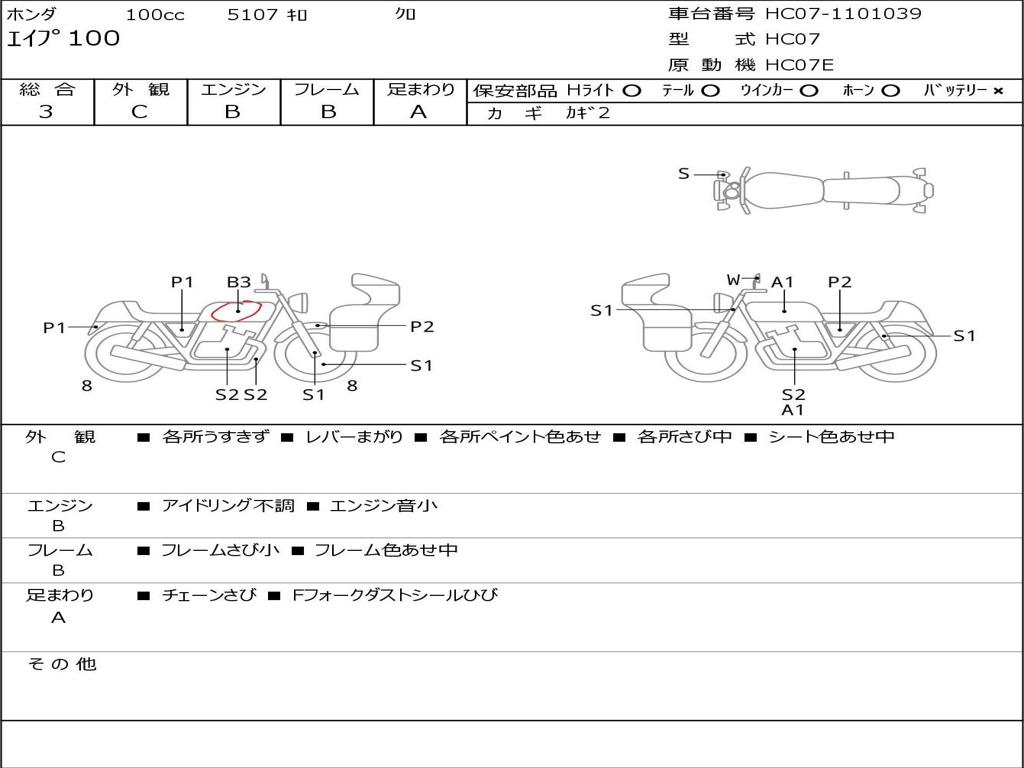 | Номер рамы / VIN | HC07-1101039 |
