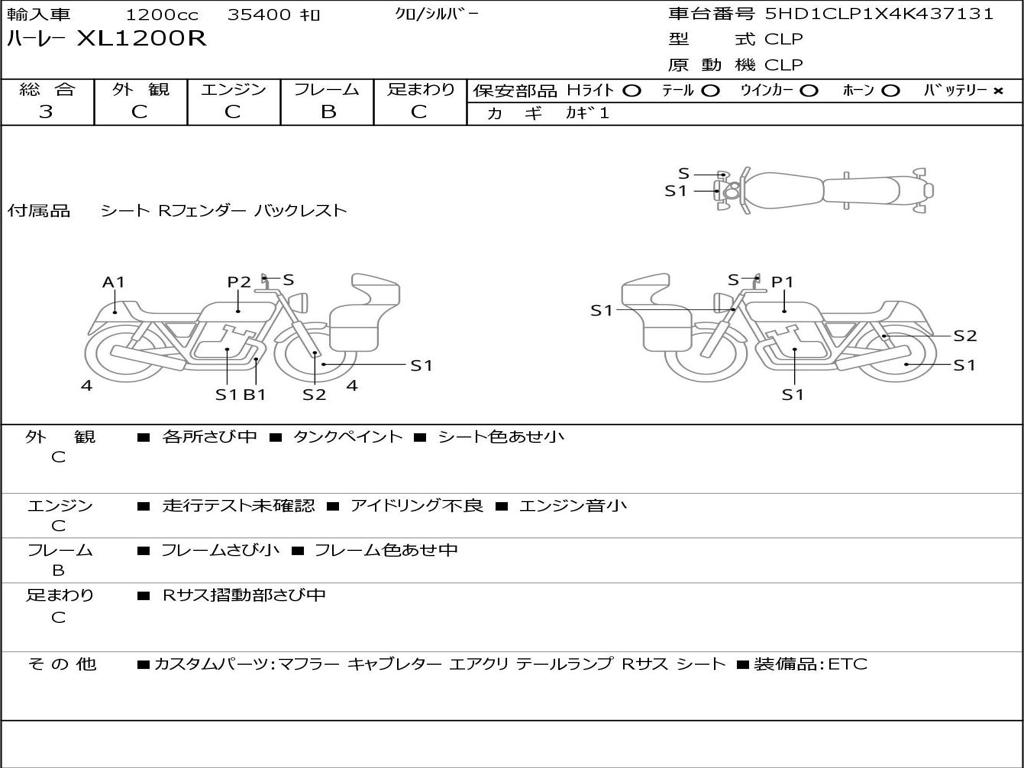 | Номер рамы / VIN | 5HD1CLP1X4K437131 |